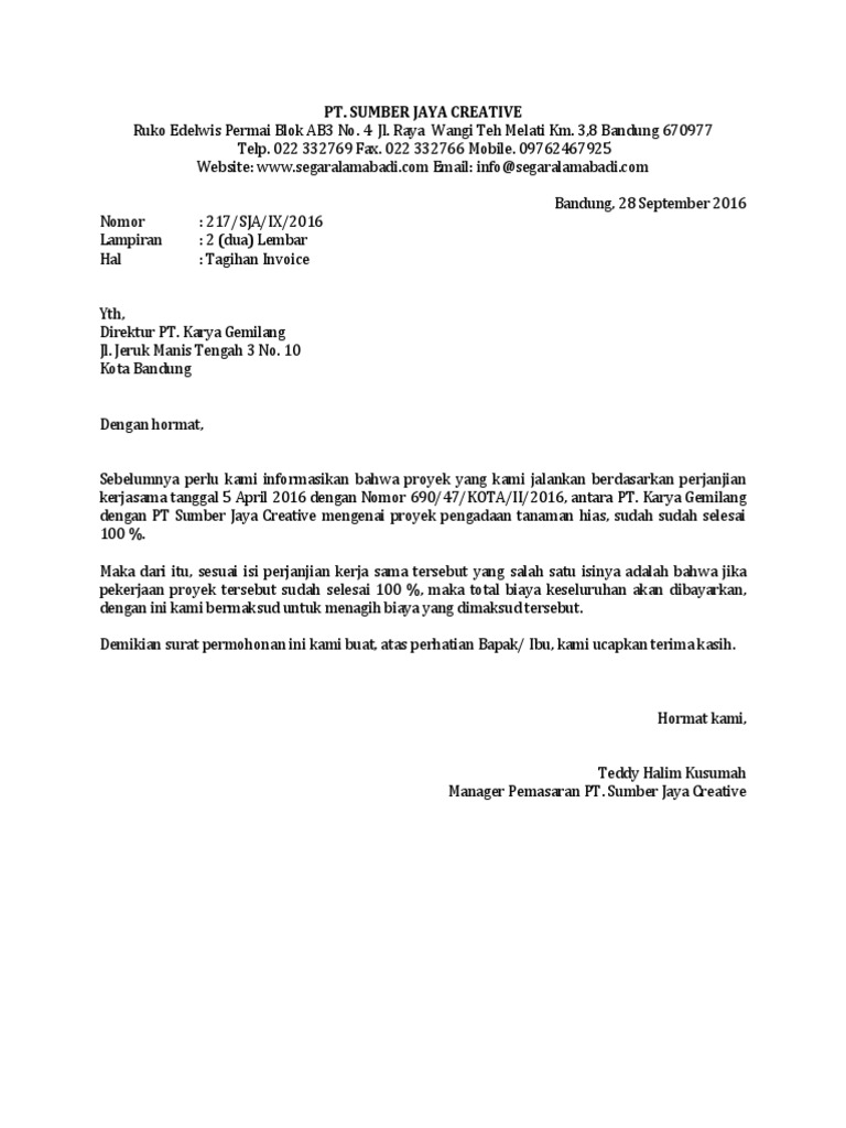 16 Contoh Surat Penagihan Hutang Pembayaran Invoice Contoh Surat from i2.wp.com Cara membuat surat undangan rapat resmi. Jul 03, 2021 · contoh surat permohonan pembayaran proyek surat permohonan pembayaran proyek merupakan surat yang berisi tagihan atau permintaan pembayaran yang sudah jatuh tempo. Pada intinya ringkasan eksekutif yang kawan kledo buat dapat menjawab pada siapa barang akan dijual dan juga manfaat apa yang akan didapatkan dengan membeli produk tersebut. Surat resmi tidak dibuat begitu saja, karena terdapat aturan penulisannya sendiri. Bahkan dalam prakteknya spj sendiri kerap digunakan dalam instansi pemerintahan, perusahaan atau bahkan bidang lain yang sangat menjunjung prinsip transaparasi dan akuntabilitas. Jan 27, 2021 · untuk itu dibutuhkan suatu surat yang mengikat atau surat pernjanjian bagaimana pekerjaan tersebut dikerjakan secara borongan. Oct 26, 2020 · tagihan proyek. Sep 05, 2020 · sebagai contoh, bisnis yang didorong oleh pasar adalah bisnis travel, sedangkan bisnis yang mendorong pasar adalah bisnis perencanaan keuangan.